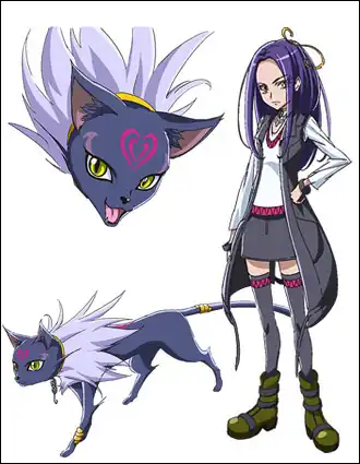 - Dark Magical Girl: Isolated herself from the other Pretty Cure and tried to find a way to help Mephisto on her own. Even after she loses the mask, she's constantly the pragmatic Grumpy Bear of the group.