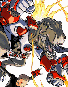 - Clothes Make the Superman: Without his armor he's only a T-Rex. But the armor makes him a true force to be reckoned with.