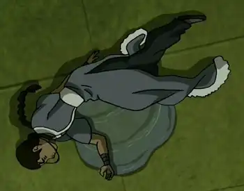 - In Avatar: The Last Airbender "The Guru," Katara is attacked by Ty Lee, and drops her waterskin when she falls, which spills and forms a pool around her, as if she'd been stabbed (although she actually went down because of a Vulcan Nerve Pinch).
