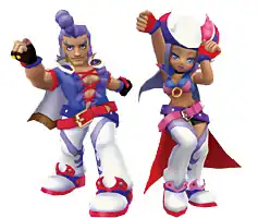 A former Alliance Marine and adopted brother to Shirley. He is hell-bent on protecting her from anything and everything. At first he is only concerned with matters that directly affect either himself or Shirley, but slowly begins to open up as he becomes friends with the inhabitants of the Legacy. He uses his fists in battle, the first Tales (series) main character to not use swords, and uses some traditional Tales (series) hero artes mixed with his own.