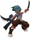 An eccentric archeologist/treasure hunter who came to the Legacy to find the a mythical stone called Everlight that can supposedly grant any wish. She uses Crystal Eres, and knows more than anybody else about various locations around the Legacy. She wields a straw, and attacks by blowing bubbles out of it.