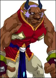 A brutish bull Gajuma who hides an evil, manipulative intellect. He possesses the Force of Magnet and is partnered with Saleh.