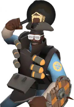 - ↑ A budding joke on the Team Fortress 2 section of the Steam User's Forum. Used to note how the game is, in the opinion of several people, ruined by promotional items, hats, trading, and/or paint. However, "Demopan", as the Demoman in the picture has been dubbed, has taken a turn for the Badass.