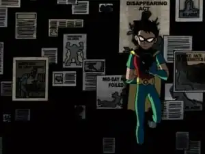 The creators are ambivalent about which Robin precisely he's supposed to be, with Word of God being that he's more supposed to represent "Robin in general" than a specific member of the Batclan. That said, the show has enough Mythology Gags that many assume him to be Dick Grayson, the First Robin. This was eventually confirmed in an issue of the Teen Titans Go! comic, where Batman narrates Robin's past.