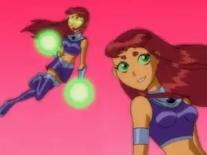 Technically the reason the Teen Titans exist in this show, Starfire is the second of the three children of the Royal Family of Tamaran. When her planet was attacked and devastated by the Gordanians, Starfire's elder sister Blackfire made a peace settlement with the invaders by giving them her younger sibling as a slave. Unfortunately for her captors, Starfire, while apparently rather naive and gentle by Tamaranian standards, was too much for them to handle, breaking loose and flying to Earth. There, she had an... interesting... meeting with the other future Teen Titans, who came to her defense against the Gordanians. Like all her species, Starfire can fly, is super strong, is extremely durable, and can hurl energy blasts called "starbolts."