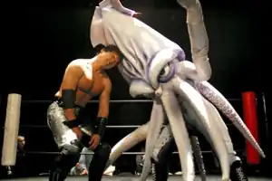 A championship match between two Japanese wrestlers has just come to an end, and the belt is about to be handed over, when suddenly a giant squid takes the stage! The squid proceeds to take down the new champion, and claim the belt for himself. This single brazen act sends the squid skyrocketing to fame, he'll have to fight off the managers who don't want him fighting, the wrestler he defeated the first time, a giant octopus his own size, and a similarly giant mantis shrimp. Even as public opinion of him soars, can he beat the odds?
