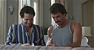 - Three Men and a Baby Features two examples! The first involves the characters of Steve Guttenberg and Tom Selleck being forced to try and change a diaper on their leather couch and it fails. The second example has Ted Danson's character return to the apartment and inevitably is forced to perform an offscreen diaper change.