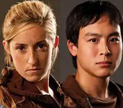 The girl died in the bloodbath at the Cornucopia. The boy escaped with supplies into the forest, but is killed offscreen later.
