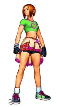 The female lead of the series, Moe is a guardian of one of the Ten Sacred Treasures, the Yatsuka no Tsurugi. A high school student residing in America, she comes across a wounded Kyo after his battle with Orochi and subsequent evasion of NESTS. Worried for his safety, Moe nurses Kyo back to health and accompanies him throughout King of Fighters. |