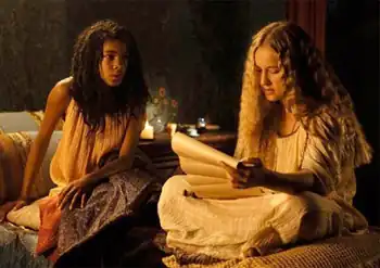 - Happiness in Slavery - Alma is one of the closest examples to this trope being played straight. She is appreciated and well treated by her master and loved almost as a mother by Flavia. She genuinely loves Flavia, Nubia and (in a platonic familial way) Marcus. However, her first mistress treated her poorly.