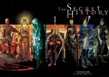 The Secret History is a French Comic Book written by Jean-Pierre Pécau and illustrated by a number of artists, but mostly Igor Kordey. It tells the story of four immortal siblings, two brothers and two sisters, who use their superhuman intellect and superpowered runestones to affect world events throughout history. The brothers are Erlin and Dyo, the sisters Reka and Aker. All four are known collectively as the Archons. Erlin is more or less always heroic, Dyo is always evil and has a particular hatred for Jews, Aker is usually heroic but sometimes not, and Reka does a few Heel Face Turns, as if she's suffering from immortal PMS. The Fifth Archon, William de Lecce, appears later on in history after the Holy Roman Emperor Henry VI castrated and blinded him in 1194. This somehow caused him to gain mystical powers, and also twisted his psyche into something monstrously evil. William also hates the Jewish People.