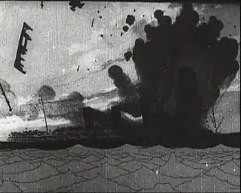 It took McCay nearly two years working on his own to produce the film, debuting a year after America entered the war. Nevertheless, this is a significant film historically and a notable early example of animation being used for a purpose other than comedy. In his seminal American Silent Film, William K. Everson called the film "a wartime film that was both anti-German propaganda and an attempt to provide a documentary reconstruction of a major news event not covered by regular newsreel cameramen. The incredibly detailed drawings of the Lusitania, intercut with inserts of newspaper headlines relative to the notable victims, and strongly-worded editorializing sub-titles concerning the bestiality of the Hun, make this a fascinating and seldom-repeated experiment."