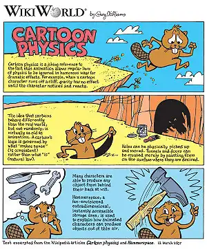 - The Cartoon Chronicles of Conroy Cat breaks up cartoon physics into two factors: the Funny Bone, where toons can withstand things like Amusing Injuries, and the Fourth Wall, as seen here.
