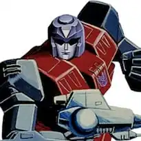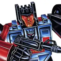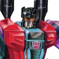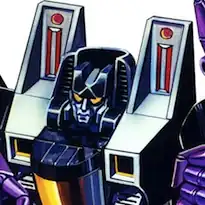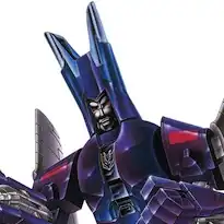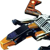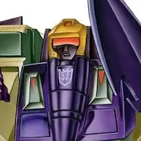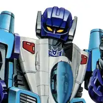 Seeks to replace Megatron as leader. Ruthless, cold-blooded, cruel... considers himself the most sophisticated and handsome of Decepticons. Believes Decepticons should rely more on guile and speed rather than brute force to defeat Autobots. Fastest flyer of group, can reach Mach 2.8 and an altitude of 52 miles. Shoots cluster bombs and null-rays which disrupts the flow of electricity. Very good at what he does, but sometimes overrates himself.