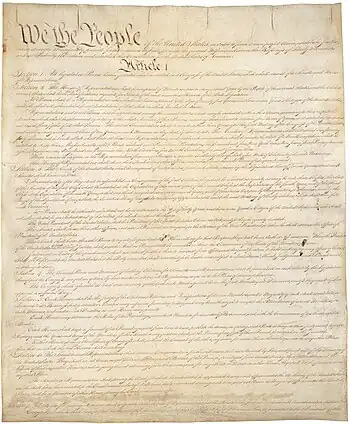 The Constitution is interpreted, supplemented, and implemented by a large body of constitutional law. The Constitution of the United States is the first constitution of its kind, adopted by the people’s representatives for an expansive nation; and it has influenced the constitutions of other nations.