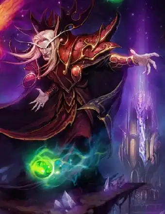 The son of King Anasterian Sunstrider, Prince Kael'thas took over leadership of the High Elves after their defeat at the Sunwell at the hands of Arthas and the Scourge. At this time, the High Elves were just learning the true price of their magic addiction: deprived of the Sunwell's energies, they grew lethargic and desperate. Kael'thas promised to find a way to cure the malady, but in the meantime, he formed an allegiance with Illidan Stormrage as the latter promised to satiate the Elves' hunger by harnessing the energies of demons themselves. Renaming his people Blood Elves, Kael'thas left them and entered Outland in search of the power to finally cure his people once and for all.