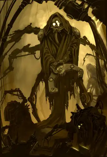 - Unwilling Roboticisation -- Depending on the Writer, some servitors are created by growing artificial lifeforms which are then grafted with mechanical components to form a completely artificial cyborg. However, it is also a common fate for those who have sinned against the Machine God to be condemned to be made into servitors themselves, their cadaver repurposed and re-animated with mechanical components.