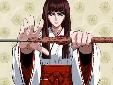 Orphaned at a young age, she was found in the streets and then raised by Miko priestesses (who actually were the friends of her Missing Mom, a former comrade of them) and eventually became the Hidden Priestess of the Ise temple. A very skilled swordswoman with the ability to summon her sword from her left hand. She initially coldly rejects the rather forward propositions of Sorata but, like Kamui, she gradually warms up to him and reciprocates. But consummating their love implied losing her powers and sealing up her lover's fate, like it apparently happened to her own mother in the past.. Ultimately, she performs a massive Face Heel Turn so she could untie Sorata from his obligations of protecting her and thus dying for her.