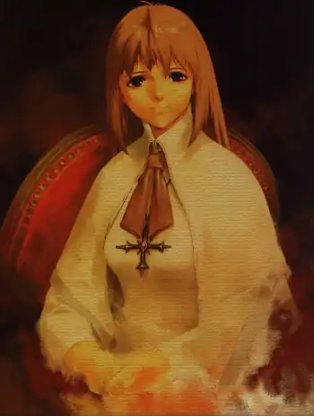 The fourth -Antitype-, real name Elhaym. She lived 500 years ago in the Empire of Nimrod. She was the first Holy Mother of the Nisan Sect present in Nimrod at the time, and was the founder of the future country of Nisan. She was friends with Lacan, Krelian, Roni Fatima and Rene Fatima, and the former two were both in love with her. But Elly loved Lacan, and it was Lacan who painted her famous unfinished portrait in Nisan. In the changing fortunes of Shevat's war with Solaris, Shevat sold out its ally Nisan in exchange for Miang. In the ensuing battle, Elly gave her life to save Lacan and Nisan. This spurred important Character Development for both Lacan and Krelian.