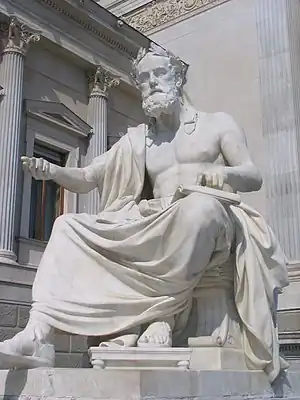 A Greek writer and historian, whose most famous writings cover events he experienced himself. He can be thought of as the first war correspondent. Most famous for the Anabasis, the trek of 10,000 Greek mercenaries from Mesopotamia through Armenia to the Black Sea. It has inspired quite a lot of fictional knockoffs, and has annoyed generations of students of Ancient Greek--Xenophon's clear, energetic style conspires with the fairly action-packed, exotic story to make for something relatively easy to teach as an Ancient Greek student's first taste of full-length classical literature.