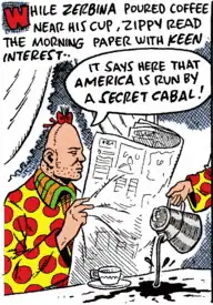 (or Zippy th' Pinhead) is a syndicated comic strip written by Bill Griffith. Zippy first appeared in "Real Pulp Comix" #1 (March, 1971) and went on to appear in Underground Comics. Then was adapted to a comic strip in 1976. In 1986, a deal between Griffith and King Features ensured much greater distribution than before.