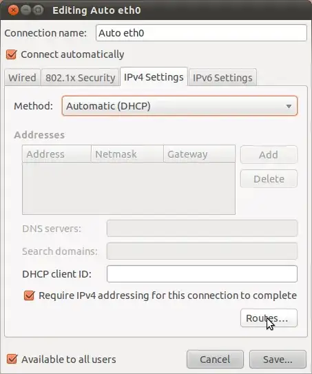 You can then force the wired connection to not claim the default gateway (since NM would usually prefer wired over wireless), by checking the "Use this connection only for the resources on its network" checkbox.