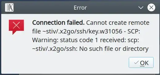 UPDATE: Both computers are on same local network with no firewalls, ssh connection between them works perfectly. Both computers are running Ubuntu 18.04, software versions: x2goserver 4.1.0.0-3 and x2goclient 4.1.1.1-2.