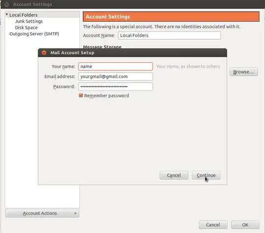 - In the "Mail Setup Account" enter your Gmail username and password and click on Continue button.