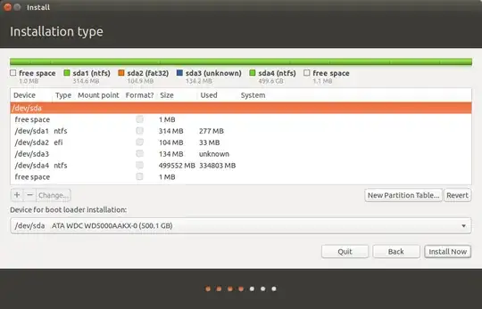 That's my partitions. I'm trying to dual boot Windows 8.1 and ubuntu 14.04, and I've disabled secureboot, fastboot, and all that crap. I'm trying to install it with UEFI.