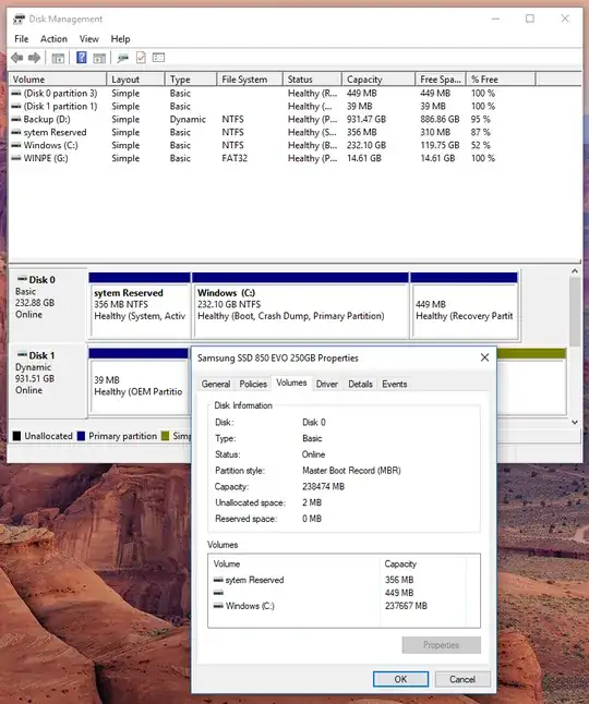 I ran diskmgmt.exe in Windows and saw that the disk had an MBR partition: