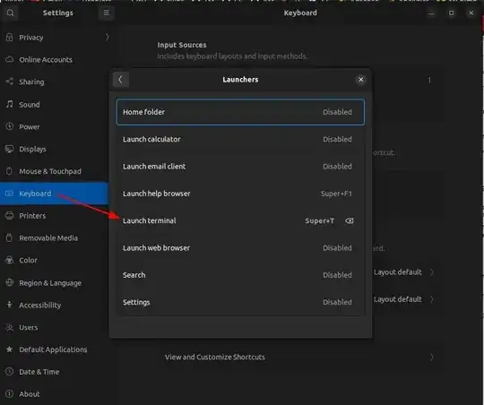 In Ubuntu 22.04 I did it by going to Settings -> Keyboard -> Keyboard Shortcuts -> Launchers -> Launch Terminal.