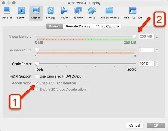 However, the display is really slow. Looking at the display settings I can see that the video memory is only 12MB but I can't move the slider to increase it. The checkboxes for extended features are greyed-out too. See screenshot.