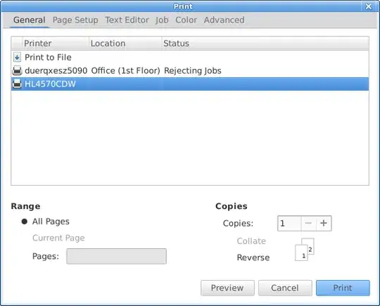 When I try to print from a Gnome application, the print dialog has non-functional printer listed. It is called "duerqxesz5090 -- Basement Utility Room -- Rejecting Jobs". Here is a screenshot of the Gnome print dialog box:
