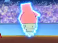 Wigglytuff begins its descent from the air with Body Slam and crashes into the ground with Eevee and Munchlax managing to evade the attack barely. Wigglytuff extends its ears grasping onto both Pokémon's bodies and thrusts them towards the air and begins using Double Slap on both Pokémon with its ears and finally slamming them to the ground. Munchlax charges another Solar Beam and Eevee launches an additional Shadow Ball. Wigglytuff, true to its title as the Balloon Pokémon, evades in the air with ease both attacks while additional Shadow Balls and Solar Beams continue their barrage. The constant misses of big attacks result in a large portion of May's score being removed.