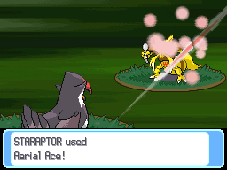 Staraptor flies at the opponent and back-flips in the air, then dives down at the opponent, its body becoming surrounded by white streaks. It then slams into the opponent. | ||