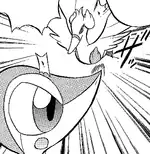 Heracross's horn glows white with an outlined light blue glow and it swipes the opponent with it. | ||