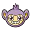 Aipom is a simian Pokémon with a three-fingered hand at the end of its tail. Its fur is purple, while the skin of its face, inner ears, belly, feet, and the tip of its tail are beige. Its face usually has a cheeky smile and round, blue eyes. With its round ears, Aipom's head is disproportionately large compared to its body. Atop its head is a cowlick that is longer on females than males. Unlike its feet, Aipom's arms are simple, purple stubs.