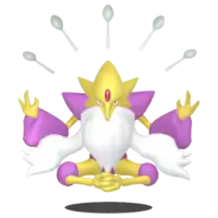 Alakazam could be seen as a counterpart to Machamp. They are both the last stage of a three-part evolutionary line, they reach their final stage by trading, level up at a Medium Slow rate, and they both have a 75% male gender ratio. Also, Alakazam excels at the Special Attack stat, while Machamp excels at Attack. Their evolutionary lines are also next to each other in the National Pokédex. Moreover, a girl in Oreburgh City will trade her Abra for a Machop. Additionally, their base friendship is the same at 70, and all Pokémon in both of their respective evolutionary lines are in the Human-Like Egg Group. Finally, while Alakazam has a Mega Evolution, Machamp has a Gigantamax form.