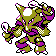 Alakazam could also be seen as a counterpart to Gengar. They are both the last stage of a three-part evolutionary line, which can only be achieved by trading, both have Mega Evolutions, Gengar is weak against Psychic moves and Alakazam is weak against Ghost moves, so they are weak and at the same time strong against each other. They have the same length, and both get smaller when they Mega Evolve. Their base friendship is also the same, with 70. In The Ancient Puzzle of Pokémopolis, there are a Gengar and an Alakazam put against each other. Since Generation VI, they both have a base stat total of 500. Both are weak to Dark-type Moves. They also have the same stat structure throughout their Evolutions, always having high Speed and Special Attack, and being very low in Physical Defense and still relatively low in Special Defense, HP, and Physical Attack.