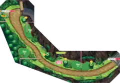 Route 10 is a simple, straightforward route from Malie City to the base of Mount Hokulani. It is sided by patches of tall grass and trees. These trees may occasionally rustle, meaning that a Flying-type Pokémon is hiding in them, and will fly out and attack anyone who gets too close. About halfway through the route, a female Trial Guide heals the player's Pokémon if talked to.