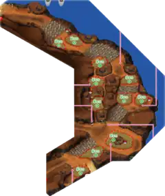 South of Punk Pair Yoko and Lane, between the second and third rocky terrains from the north