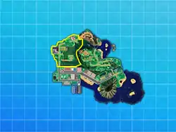 Route 2 is a seaside path connecting the southern and northern parts of Melemele Island and serves as a training area for many local Trainers. A motel is situated near the southern end of the route, while a Pokémon Center is located near its northern end. The northern end is initially blocked off by a barricade, which are moved aside once the player has cleared Ilima's trial at the Verdant Cavern.
