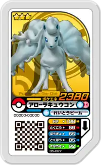 Alolan Ninetales (Japanese: アローラキュウコン Alolan Kyukon) is a Grade 3 Pokémon Ga-Olé disk. It is part of the fifth set.