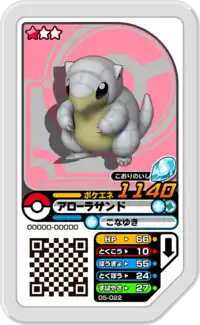 Alolan Sandshrew (Japanese: アローラサンド Alolan Sand) is a Grade 1 Pokémon Ga-Olé disk. It is part of the fifth set.