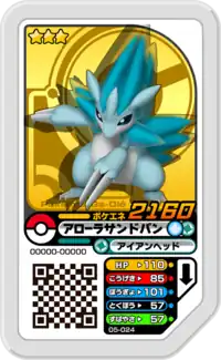 Alolan Sandslash (Japanese: アローラサンドパン Alolan Sandpan) is a Grade 3 Pokémon Ga-Olé disk. It is part of the fifth set.
