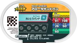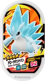 Alolan Sandslash (Japanese: アローラサンドパン Alolan Sandpan) is a Grade 4 Pokémon Mezastar tag. It is part of the third Super Tag set.