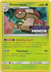 Amoonguss (Japanese: モロバレル Morobareru) is a Grass-type Stage 1 Pokémon card. It was first released as part of the Unified Minds expansion.