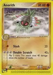 Anorith (Japanese: アノプス Anopth) is a Fighting-type Stage 1 Pokémon card. It is part of the EX Sandstorm expansion.