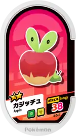 Applin (Japanese: カジッチュ Kajicchu) is a Grade 2 Pokémon Mezastar tag. It is part of the fourth set.