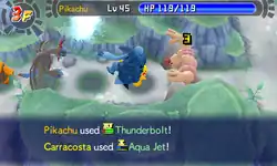 Basculin's body becomes surrounded by water and it shoots itself like a rocket at the opponent, slamming into it. | ||